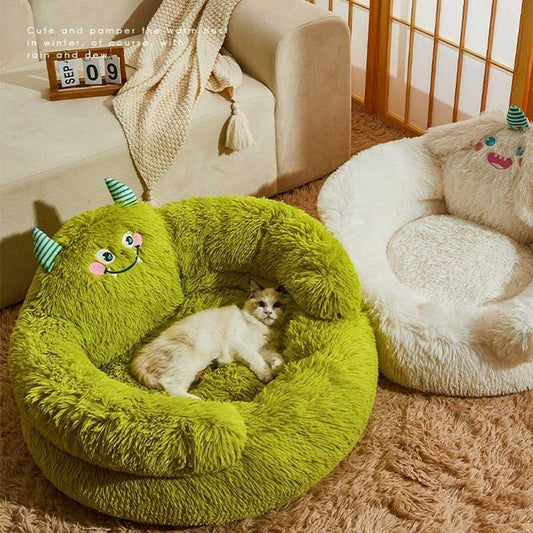 Green Monster Cat Sofa Fluffy Cat Bed Couch
