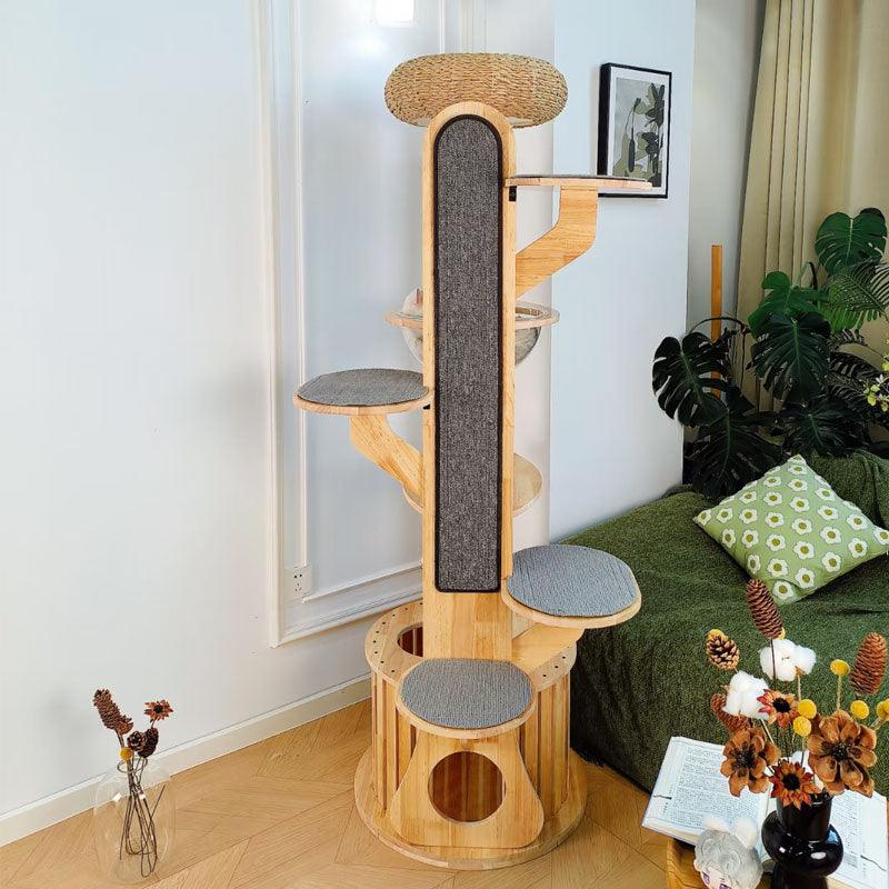 Premium Materials: Constructed from high-quality, eco-friendly rubber wood, this cat tree is UV waterproof, easy to clean, and resistant to cat hair, ensuring a stylish addition to your home.