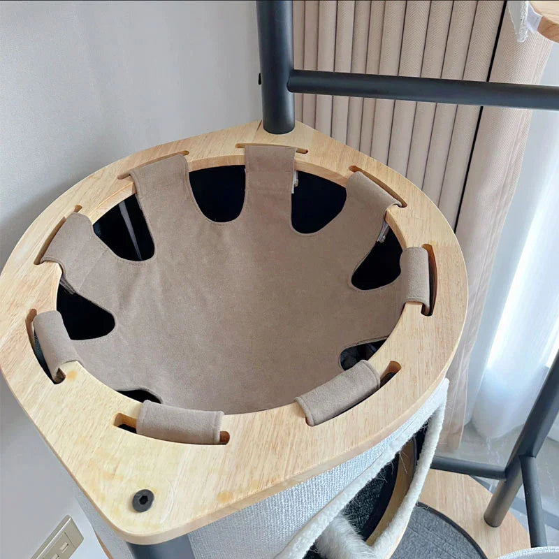 Easy Maintenance: Features removable cat scratch pads, climbing mats, and hammocks, all designed for easy cleaning and replacement.
