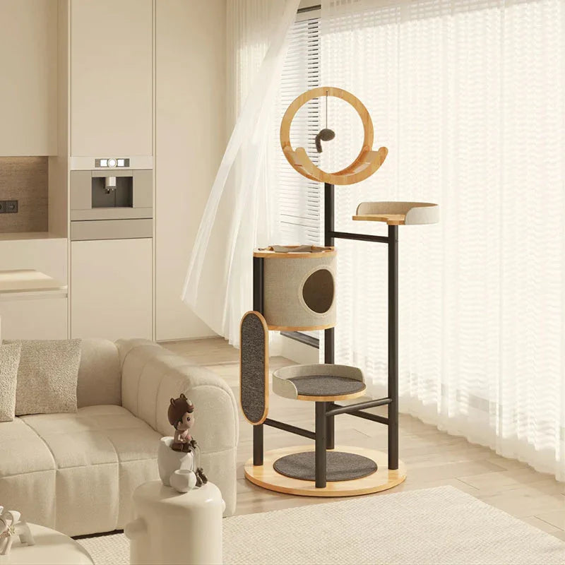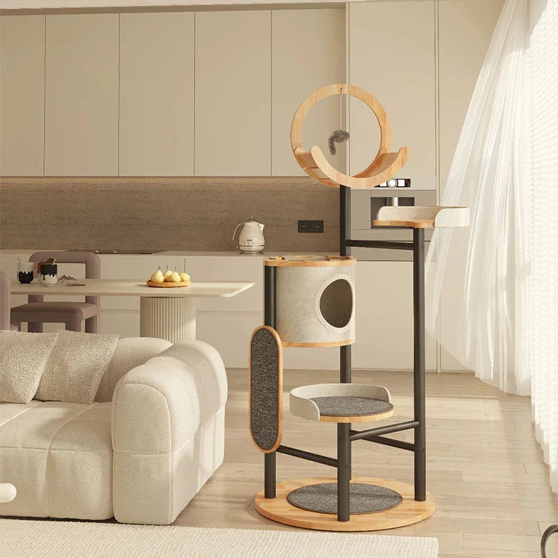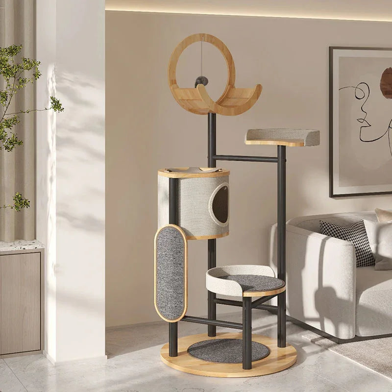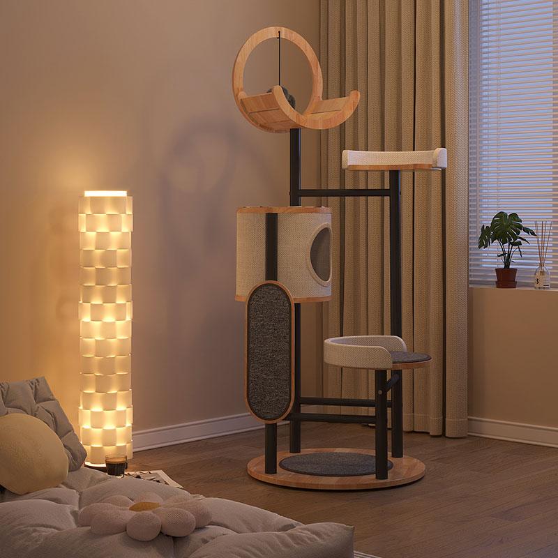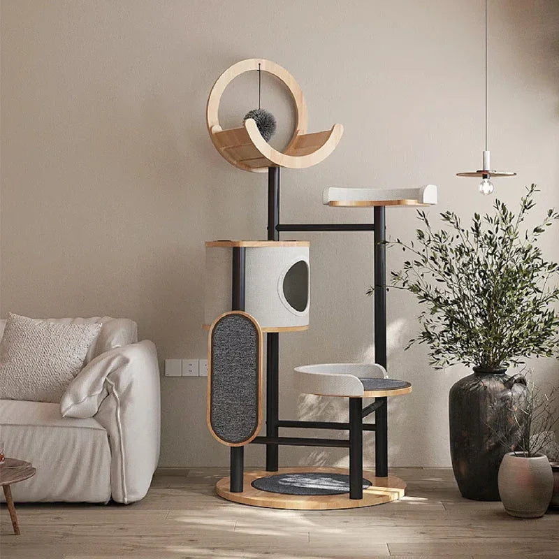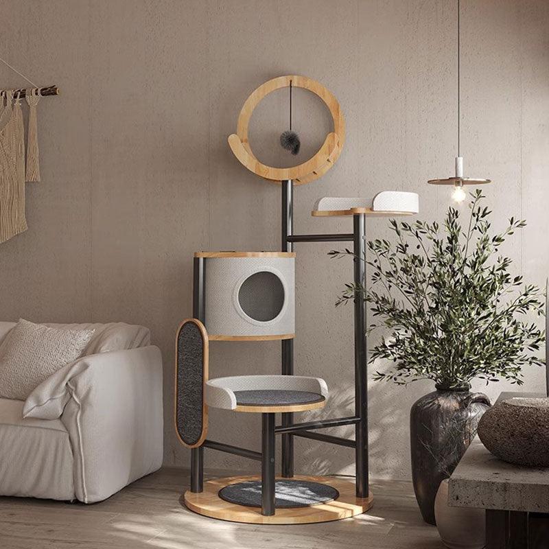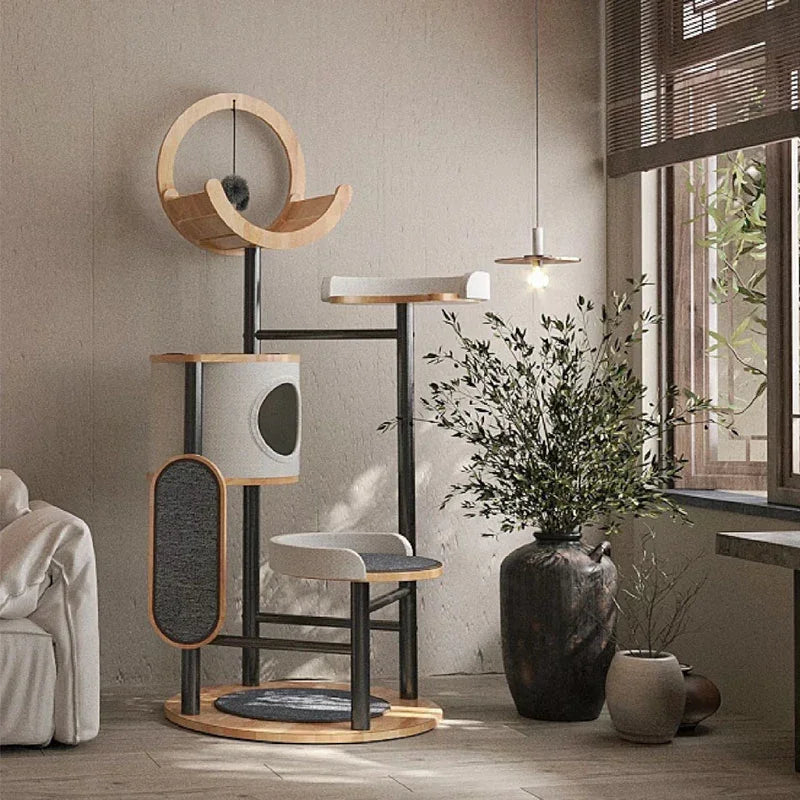 Stylish Design: The Steel Art Lively Cat Tree combines solid wood and iron artistry, creating a multi-layered fun space for your feline friend.